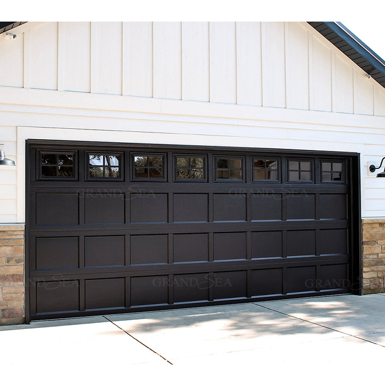 Sectional garage doors are composed of multiple horizontal panels connected by high-strength hinges. The panels are made of various materials, commonly including galvanized steel, aluminum alloy, solid wood, and composite panels. Insulated panels with thermal insulation layers can be selected depending on the regional climate (such as PU foam insulated panels commonly used in cold regions of North America).
